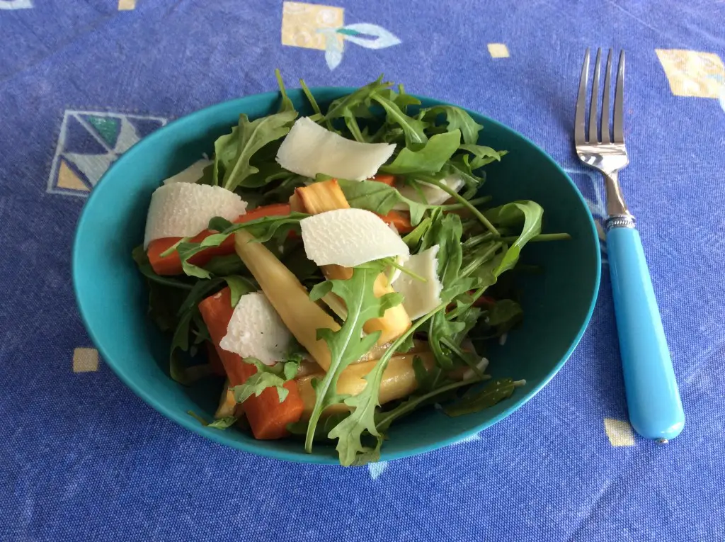 - lad rodfrugterne køle af og server dem med rucola og parmesan