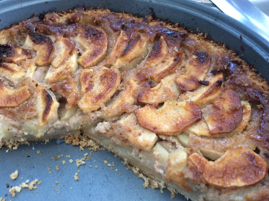 Farmors æblekage er en nem og hurtig kage at lave, og den smager himmelsk. Jeg havde lige nogle æbler liggende som skulle bruges og derfor bliver i lige belemret med opskriften på denne skønne tærte. brug gerne nogle aromatiske æbler med god syre, men alle æbler kan godt bruges. Kage kan man altid spise især når der er frugt i, frugt er jo sundt siges der, så bare kom i gang med at få brugt dine æbler på denne skønne tærte, jeg er sikker på at den lige falder i familiens smag. Den hører ikke til de sundeste tærter, men den smager fantastisk og du vælger selv om du vil smage et lille stykke, eller….for jeg er slet ikke gået på kompromis med ingredienserne, da mine frugttærter skal have både sødme, fedt og god smag. Kalorieindholdet i et stykke af Farmors æblekage er 364 Kcal. fordelt på 4,3 g protein, 40 g kulhydrat og 20,6 g fedt. Velbekomme…..