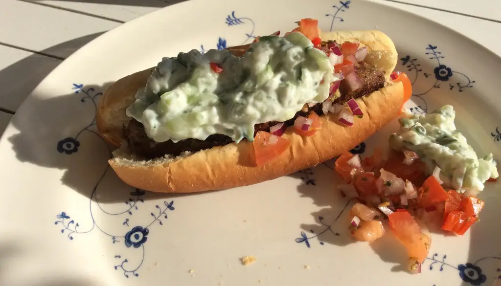 Hot dog kende alle, nogen elsker dem mens andre ikke kan døje dem. Denne udgave af Hot dog har intet med røde pølser at gøre, lad mig lige slå det fast med det samme, for jeg er nemlig ikke vild med den gammeldags udgave, for at sige det mildt, jeg synes det er en slatten fornemmelse at få i munden, så går jeg en lang bue udenom. Denne Hot dog er lavet på oksekød som er godt krydret og jeg er sikker på at den også lige falder i din smag. Er du vild med chili så giv den bare gas, jeg brugte en 10’er på skalaen, og den smagte fantastisk, stærk med god. Pølsebrødene er stadig de samme, men bestemt ikke indholdet. Kalorieindholdet i en Hot dog er 291 Kcal. fordelt på 21 g protein, 29,8 g kulhydrat og 9,2 g fedt. Velbekomme…..