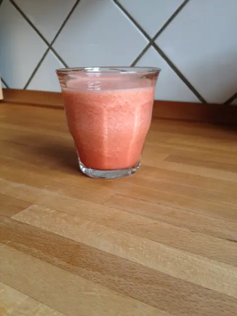 - kom juice og jordbær i din blender og kør til den er blød og cremet
