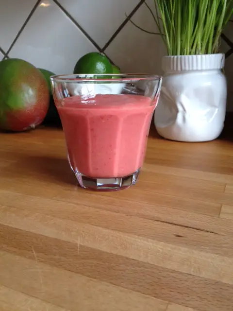 Rosa Mango med hindbær er en fantastisk smags oplevelse af Mango og hindbær. Det er ikke fordi at der er kommet en ny sort af Mango. Den bliver du nød til at prøve, og blive forført af denne cremede smoothie. Sommerfrisk i smagen og forførende Rosa. Der er samtidig lidt at tygge på, nemlig kernerne fra hindbærene. Mango kan du få hele året rundt og det samme gælder også hindbær. Der er ikke meget sæson i frugterne mere, med mindre at de skal være danske. Den booster din energi.