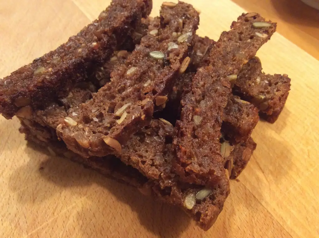 Rugbrøds stave passer som tilbehør til din varme suppe, blandet salat for evt. mere fylde eller bare som en lille hapser når sulten melder sig om eftermiddagen. Mine børnebørn er vilde med dem og spiser dem gladeligt om eftermiddagen når de bliver hentet fra institutionen sammen med en gulerod eller æble, og den skrækkelig ulvetime er derfor trådt ud af kraft, for de er nemme at have med uanset hvor du er, og som Christian siger skal de laves af tørt rugbrød, sådan går det når man misforstår en samtale mellem voksne og ikke rigtig hører efter. De skal naturligvis tørres i ovnen, og har du en rest rugbrød du ved du ikke får spist lige med det samme er her en god anledning til at lave lidt tilbehør. Rugbrøds stave er et sundere alternativ til hvide boller eller kiks, og børnene vil elske at sidde og tygge i dem på vej hjem fra fritten. Velbekomme……